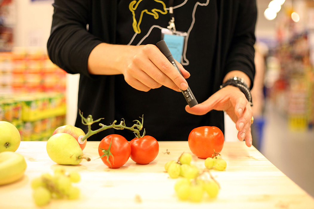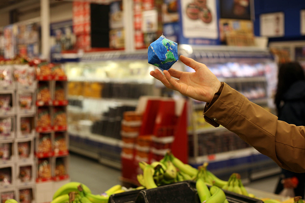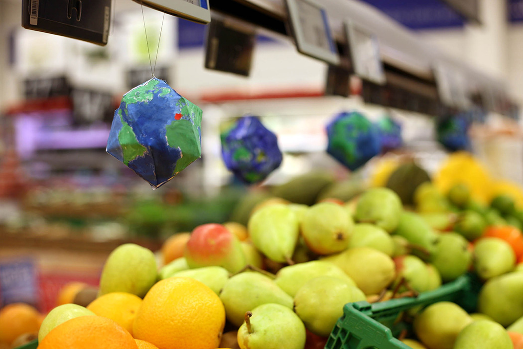 For å vise distansen mellom Norge, Rema 1000-butikken og matvarers opprinnelsesland, ble bittesmå jordkloder hengt opp under prisskiltene i fruktdisken. En litt større installasjon av pappmasjefrukt ble hengt i taket. Butikkavdelingen skulle slik bli omgjort til et «fruktplanetarium» – en global representasjon. Roomservices var også tilstede i butikken i et ønske om å spre bevissthet og kunnskap om matvarepolitikk.